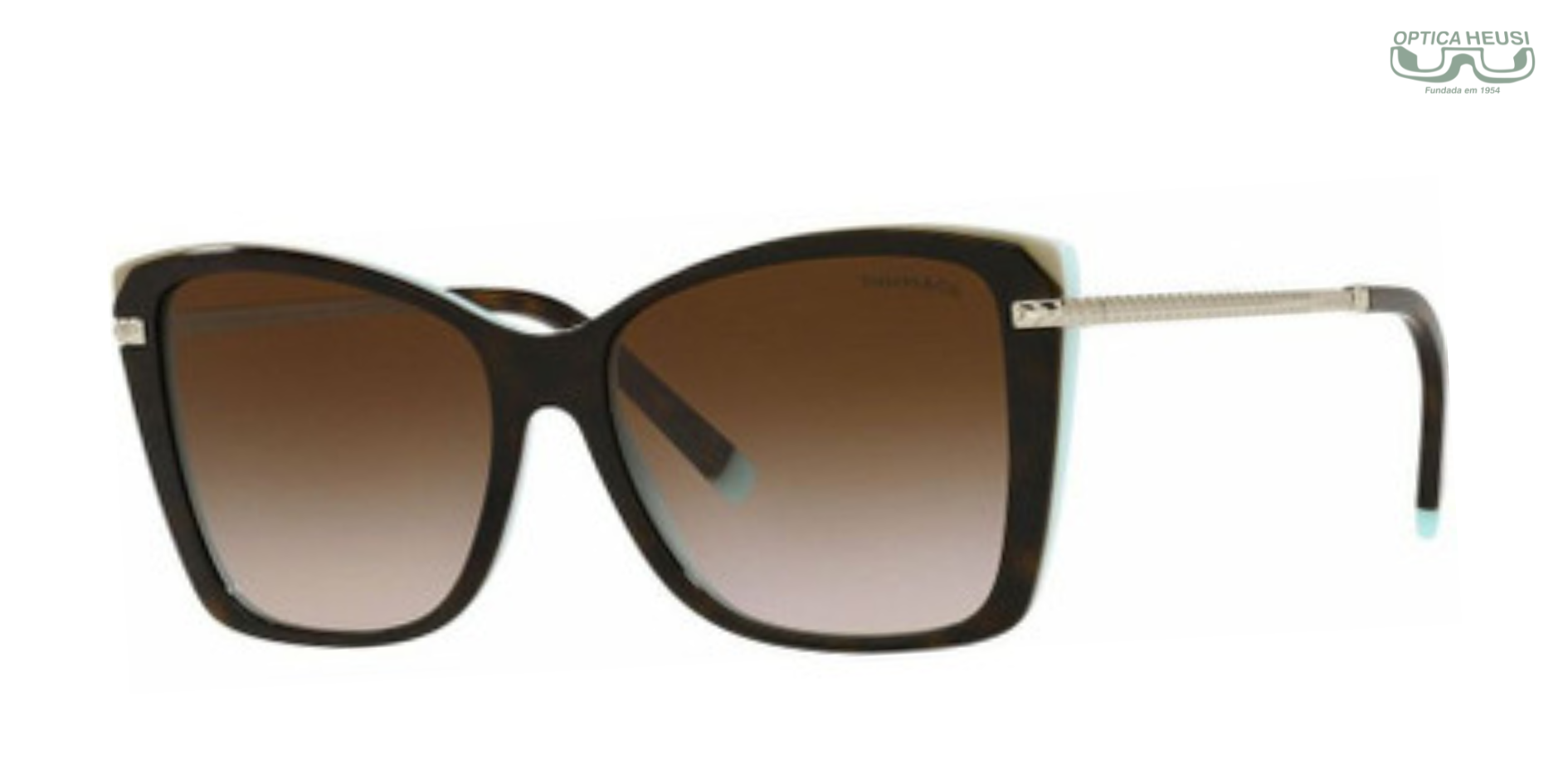 Sua armação em acetato marrom tartaruga ganha um charme especial com o interior em azul Tiffany, cor símbolo da marca e sinônimo de elegância atemporal. As hastes em metal trazem detalhes inspirados nas icônicas joias Tiffany, adicionando um toque de sofisticação e brilho sutil que eleva qualquer look.