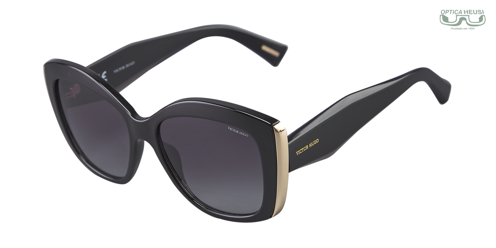 O óculos de sol Victor Hugo SH1926 traduz sofisticação e presença em cada detalhe. Produzido em acetato preto, o modelo ganha destaque com os detalhes em metal dourado nas laterais, que adicionam um toque chique e elegante.